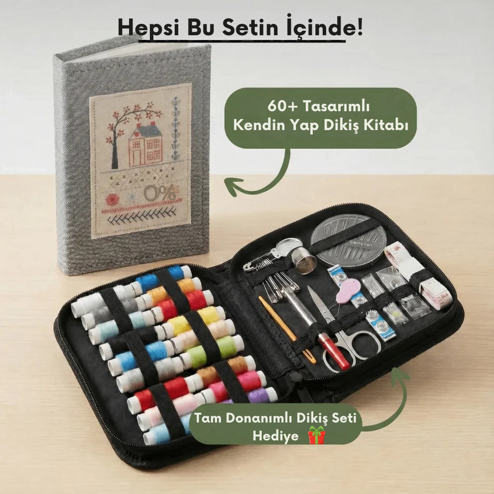 Evet, kitap iplik, iğne, makas ve diğer temel malzemelerle birlikte eksiksiz olarak geliyor, böylece kutudan çıkarır çıkarmaz dikişe başlayabilirsiniz.